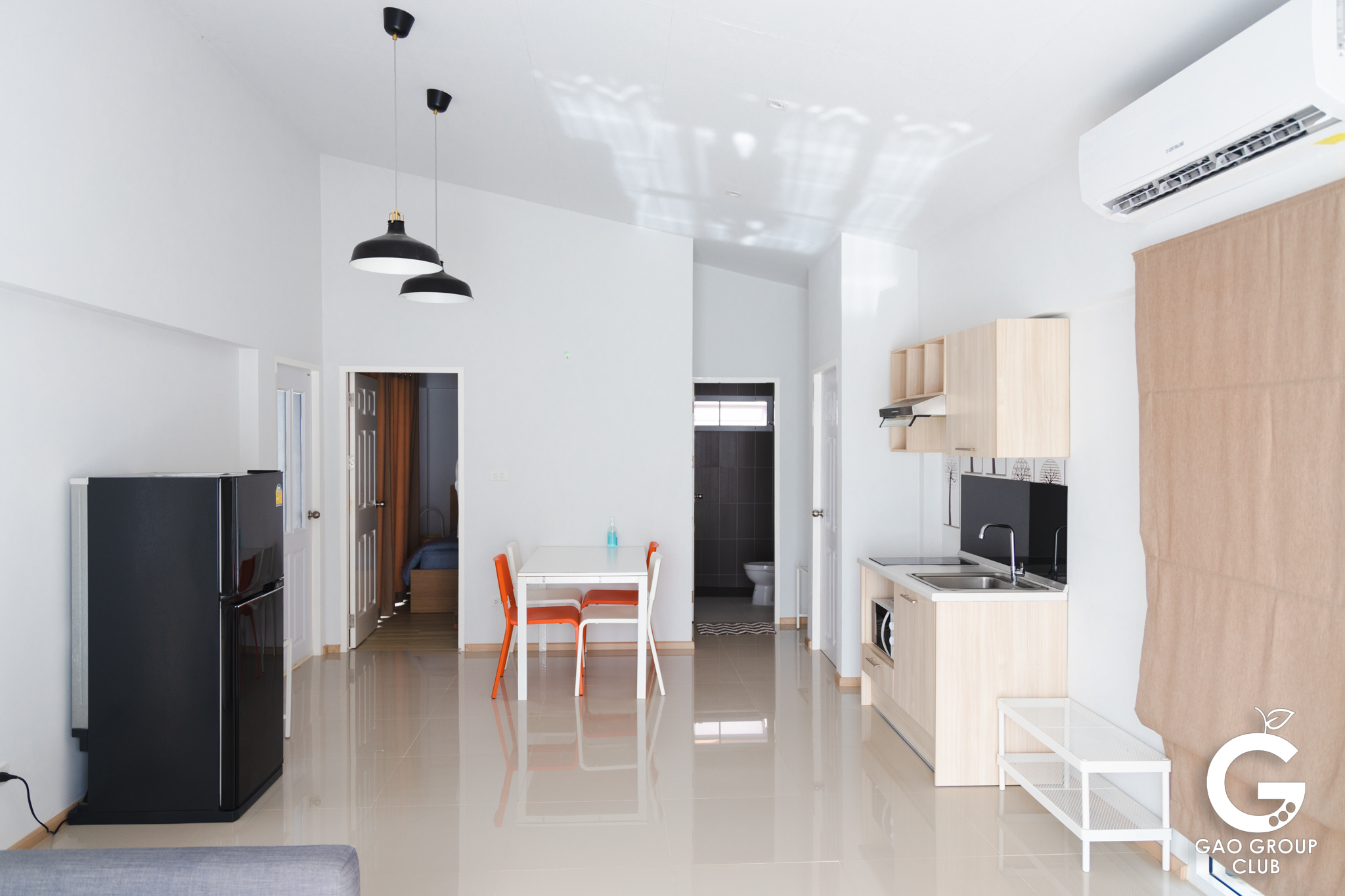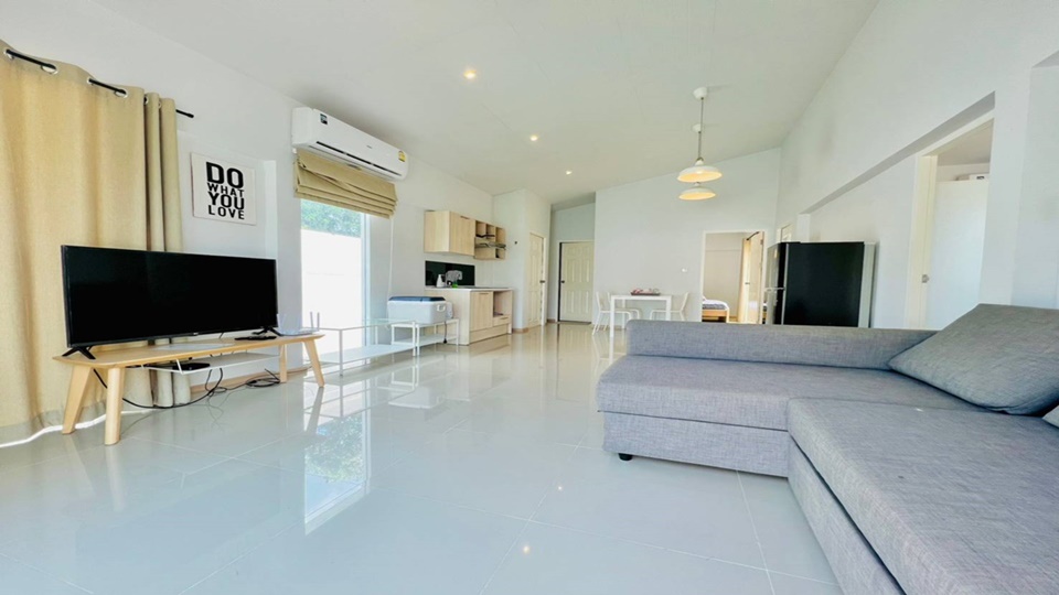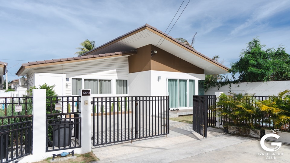 ตัวบ้านตกแต่งสไตล์มินิมอลโทนสีขาวเทา มีเฟอร์นิเจอร์และของใช้จำเป็นครบครัน พร้อมยกกระเป๋าเข้าอยู่ได้เลย ประกอบไปด้วย ห้องนอน ห้องน้ำ โซนนั่งเล่น มุมครัว สระว่ายน้ำ มุมสนามหญ้าหลังบ้าน พร้อมที่จอดรถ และอินเตอร์เนต เริ่มต้นที่ 54 ตร.ม.
