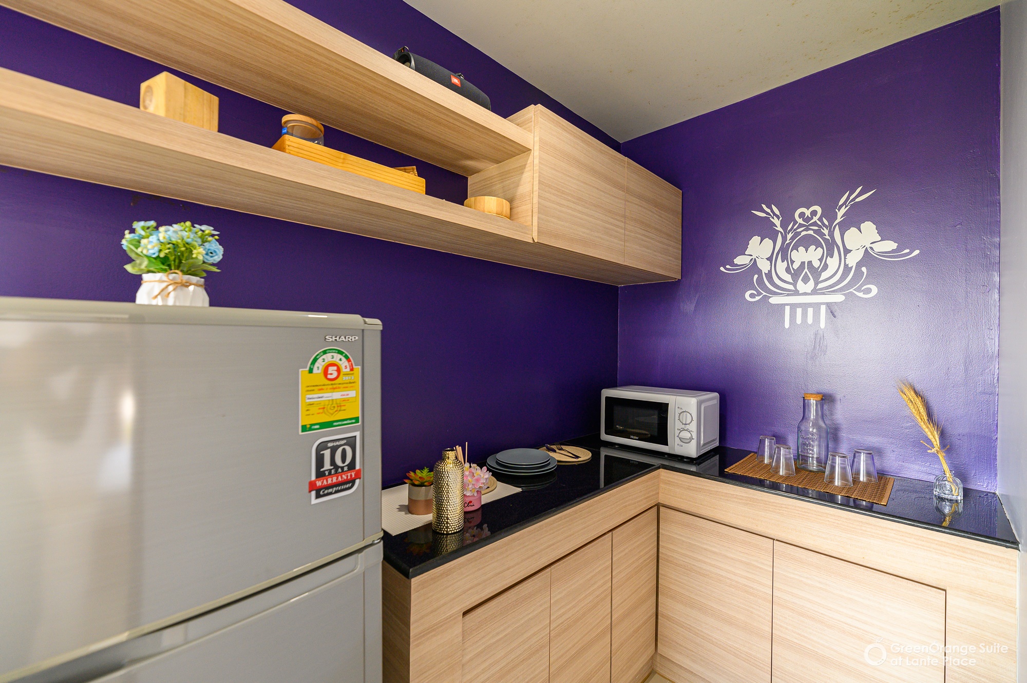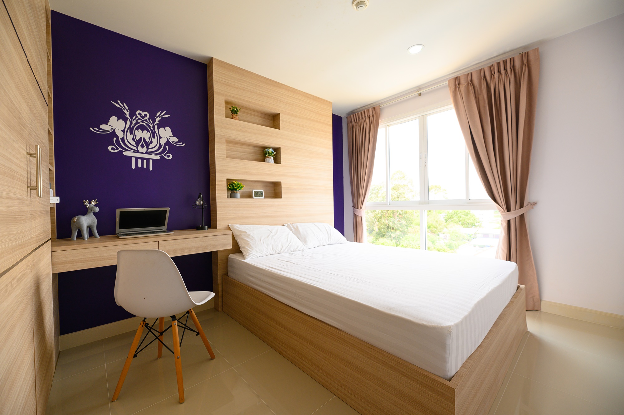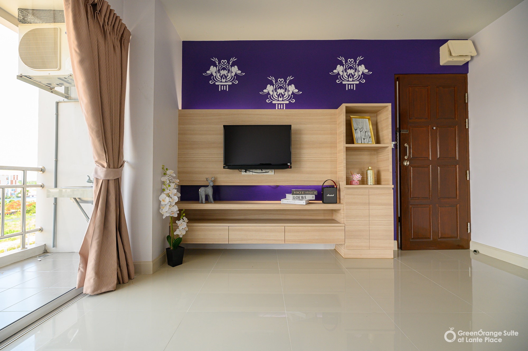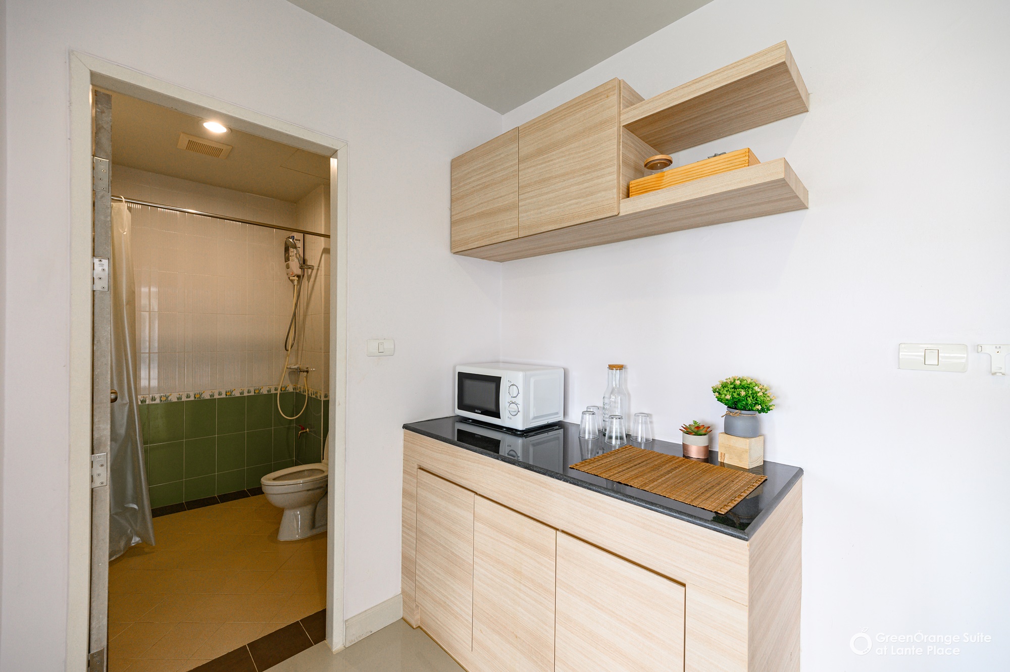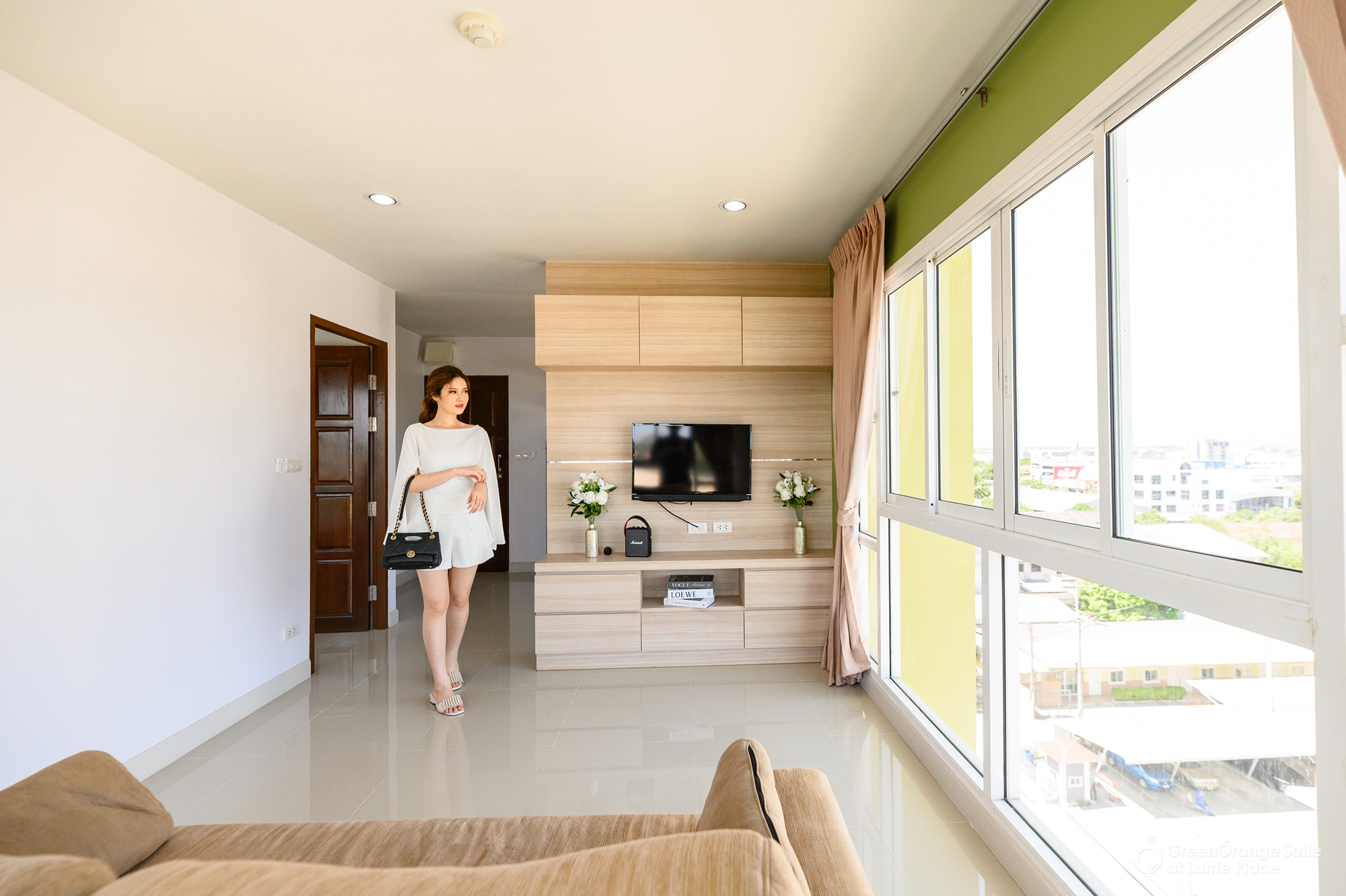 ทุกห้องประกอบด้วย : เตียง ชั้นข้างหัวเตียง ตู้เสี้อผ้า โต๊ะเครื่องแป้ง แบบ Build in สี earth tone ให้ความรู้สึกสบายตา, sink ล้างจานริมระเบียง, ทีวี ตู้เย็น ที่นอน โซฟา จัดไว้ให้พร้อม ในห้องน้ำมีม่านแยกโซนและเครื่องทำน้ำอุ่นให้อีกด้วย